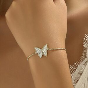 - Bracelets: Delicate butterfly charms paired with the phrase “Elegance in motion” create a subtle yet stylish look.