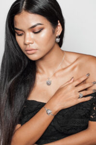 Whether worn as a daily accessory or a cherished keepsake, this timeless combination celebrates all shades of humanity. The soft glow of silver against brown skin tells a universal story one of elegance, pride, and the unending beauty of diversity.